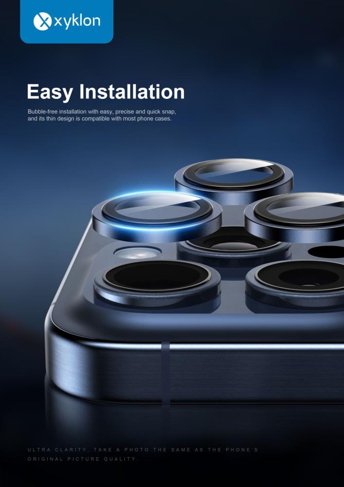 حماية كاميرا ايفون 15 برو / 15 برو ماكس 3D تيتانيوم ملون ماركة XYKLON