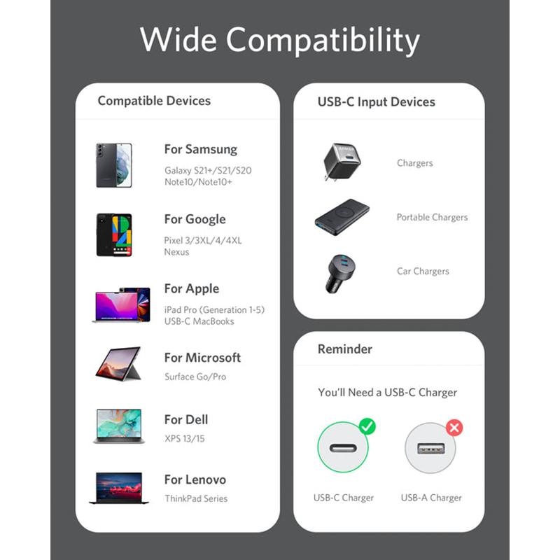 - مصنوع من مواد ذات جودة عالية من جل السيليكا وأسلاك الجرافين الناعمة المبتكرة، لتظل خالة من التشابك عند وضعها في حقبيتك او جيبك او لفها حول الشاحن.