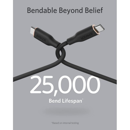سلك شاحن تايب سي بقوة 100 واط باورلاين 3 فلو ماركة انكر لون اسود