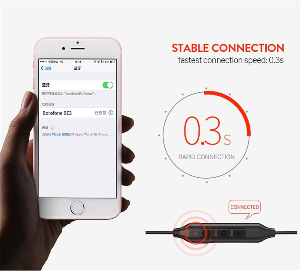 BOROFONE BE3 العالمي مقاوم للماء الرياضة الجري الركض سماعة لاسلكية V4.0 10 متر انتقال المسافة سماعات