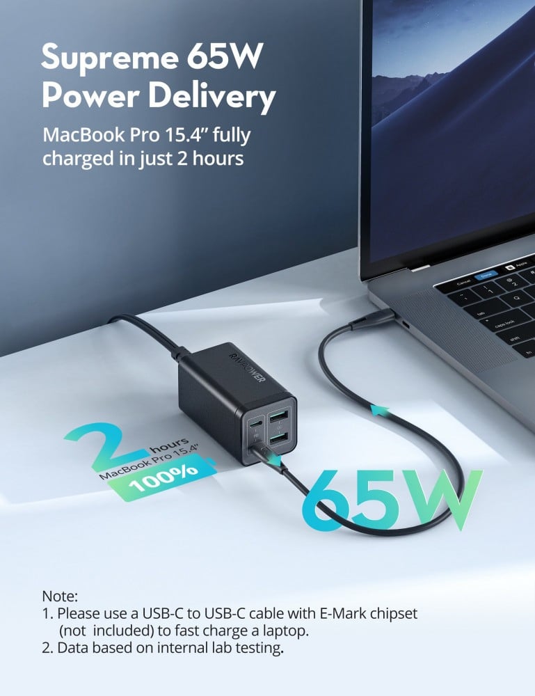 منصة شحن راف باور قوة 65 واط مع 4 منافذ شحن سريع