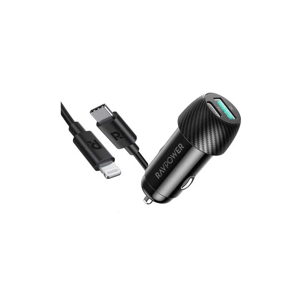 شاحن سيارة تايب سي 49 واط مع كيبل تايب سي لايتنينج ماركة راف باور Ravpower
