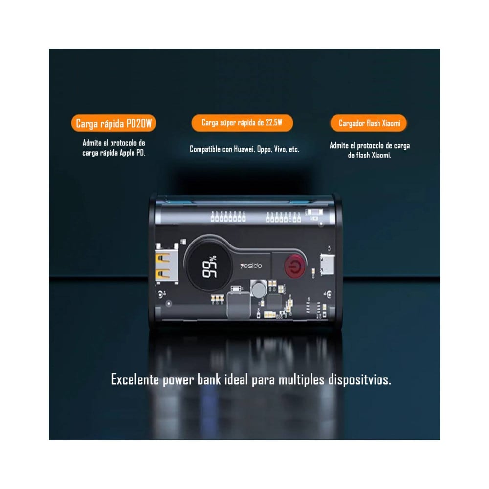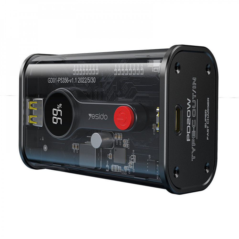 بطارية متنقلة شفاف بتصميم مبتكر وحديث تجمع بين احدث التقنيات وفخامة المنظر سعة 10,000 مللي امبير بقوة 20 واط و ماركة يسيدو مع مؤشر رقمي LED توضح نسبة الشحن, تحتوي على منفذ USB-A ومنفذ USB-C للشحن السريع ومزايا حماية متقدمة، سيكون شريكك المثالي للتنقل والسفر. استمتع بحياة محمولة مريحة ومتواصلة مع هذا الباور بانك الموثوق.