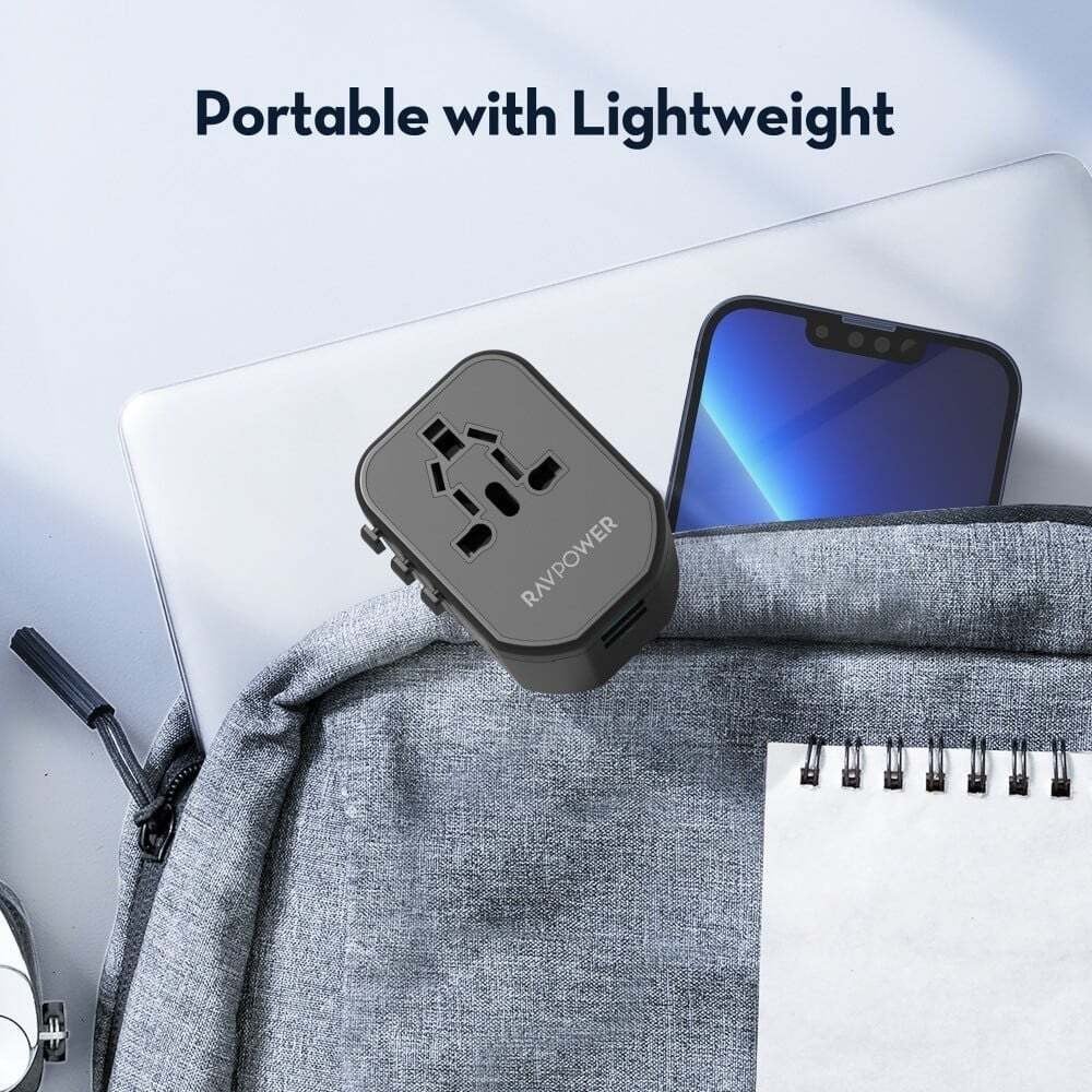 فيش سفر 20 واط متعدد الافياش مع منفذين USB ومنفذ تايب سي ماركة راف باور Ravpower