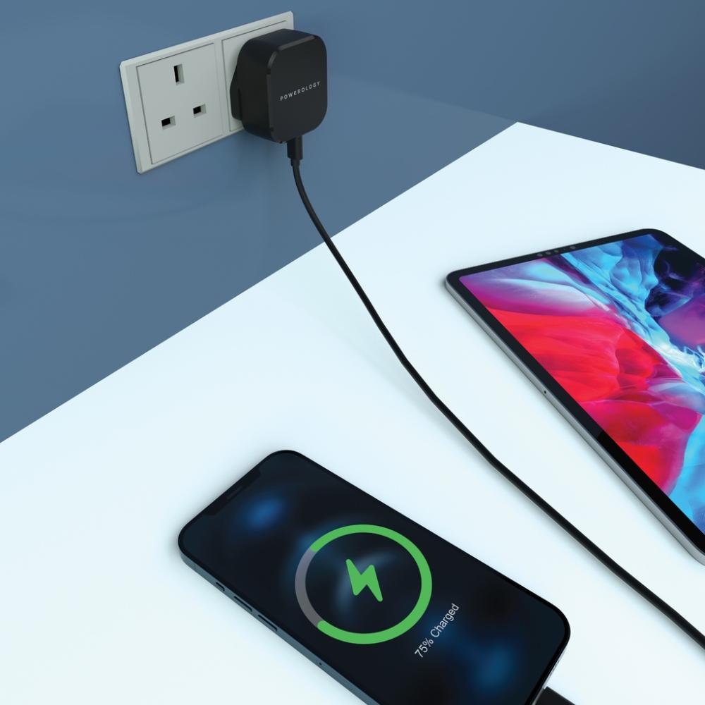 مع Powerology Dual Port Fast Charger، يمكنك الاستمتاع بشحن سريع وآمن في أي وقت وفي أي مكان.