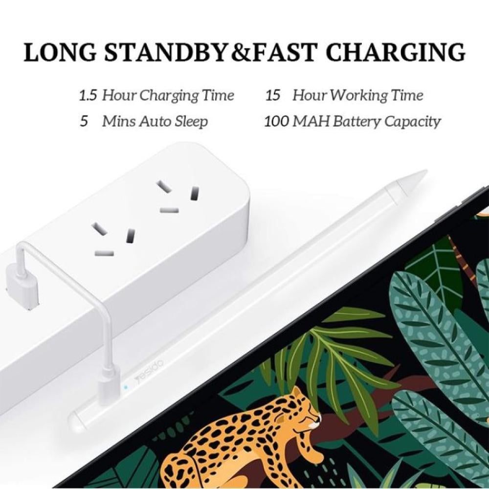 لا حاجة إلى التوصيل، انقر على زر الغطاء وابدأ في الإبداع، وسوف يتحول القلم تلقائيًا إلى "وضع الإيقاف المؤقت" عند تركه بغير استخدام لمدة 5 دقائق لتوفير الطاقة.