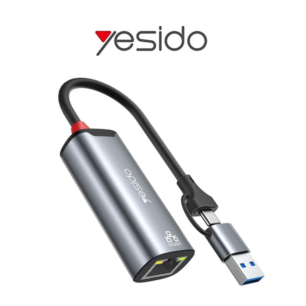 محول من USB+USB-C/Type-C الى منفذ ايثرنت نت من النوع سي إلى ار جيه 45 ماركة يسيدو