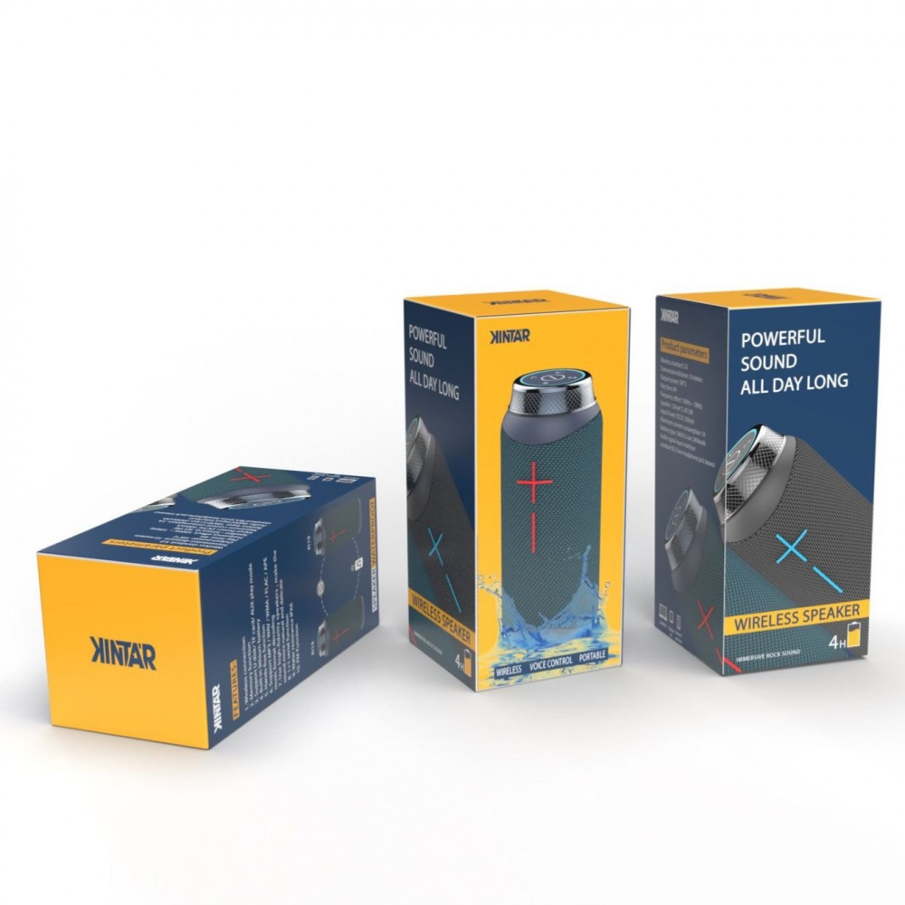 179 SARمكبر صوت بلوتوث لاسلكي ماركة Kintar كنتار ، مقاوم للماء بعيار IPX6 تتميز بصوت ضخم محيطي بتصميم جميل قماشي على شكل اسطواني, مكبر صوت يعمل على بطارية داخلية قابلة لإعادة الشحن من خلال شاحن الجوال و يستمر على الشحنة الواحدة 4 ساعات عمل متواصلة. تقنية بلوتوث 5.0 تسمح لك بالاتصال من خلال مسافة 10 متر. ( يدعم تشغيل الموسيقى من خلال AUX / USB / وأيضا بطاقة ذاكرة TF )