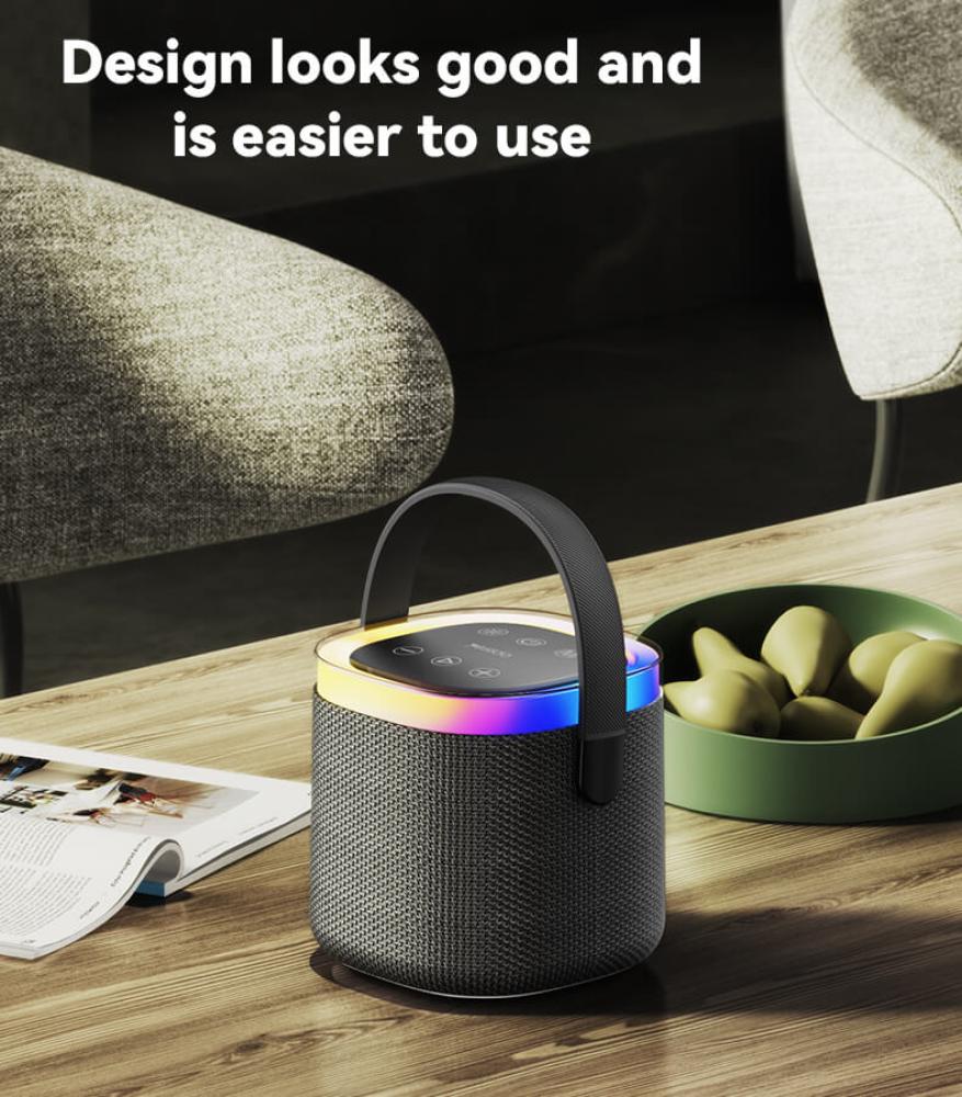 - تصميم صغير ومحمول: مكبر صوت بلوتوث صغير يسهل حمله في أي مكان، مما يجعله رفيقًا رائعًا للتنقل.